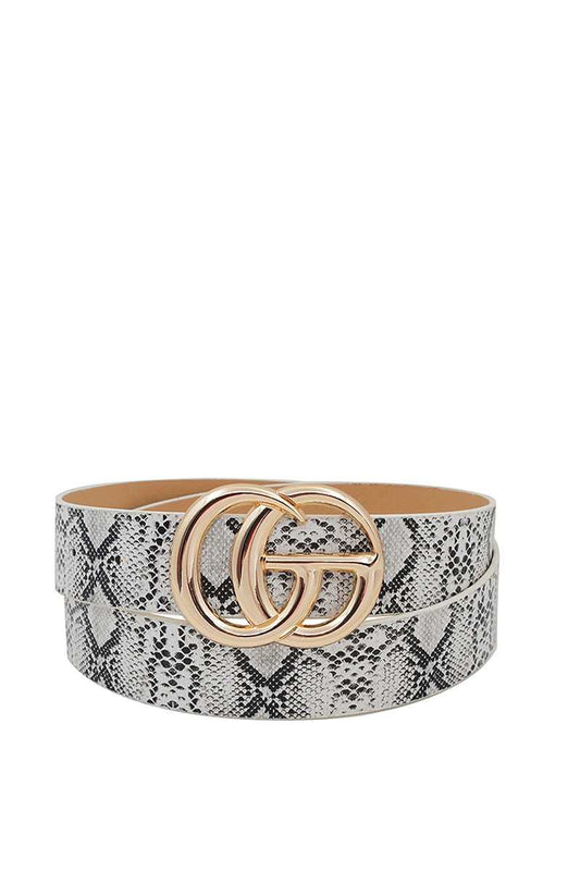 Hot Trendy Python Pattern Double Ring Buckle Belt