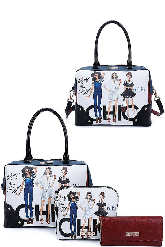 Nikky By Nicole Lee 3in1 Chic Girls Print Satchel Crossbody And Wallet Set