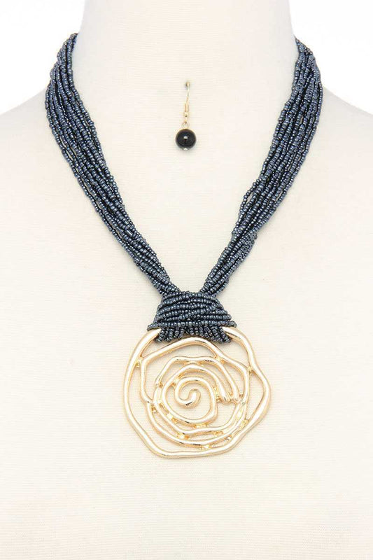 Cut Out Flower Pendant Beaded Chunky Necklace