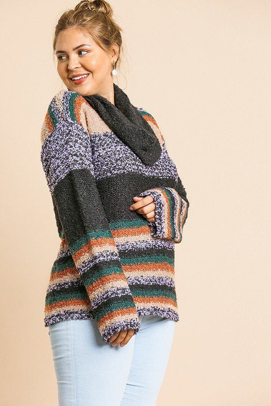 Multicolor Striped Fuzzy Knit Long Sleeve Pullover