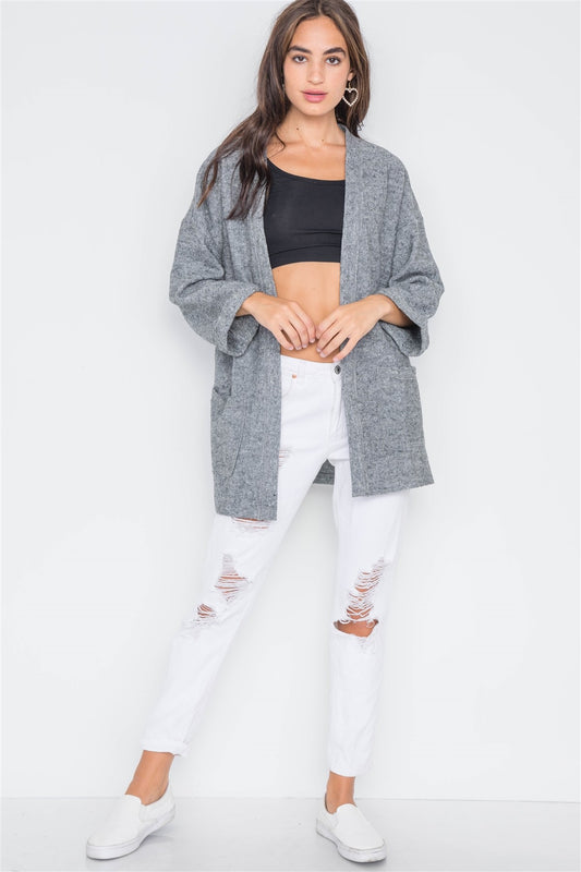 Long Sleeve Notched Collar W/pocket Tunic Jacket