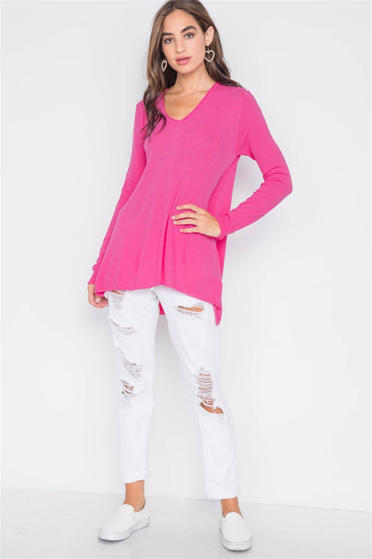 Knit V-neck Casual Solid Long Sleeve Sweater