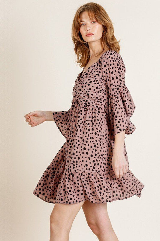 Dalmatian Print Ruffle Bell Sleeve Sweetheart Neckline Dress