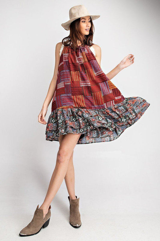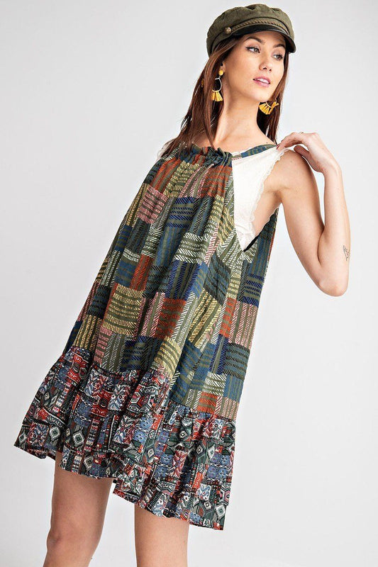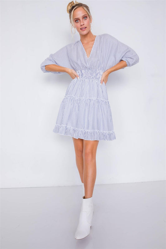 Contrast Stripes Frill Trim Modern Tencel Mini Dress