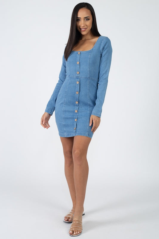 Linen Blend Long Puff Sleeve Round Neck High Low Dress