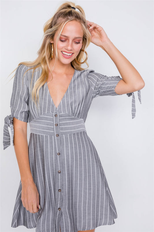 Stripe Casual Office Chic 3/4 Bow Sleeve Mini Dress
