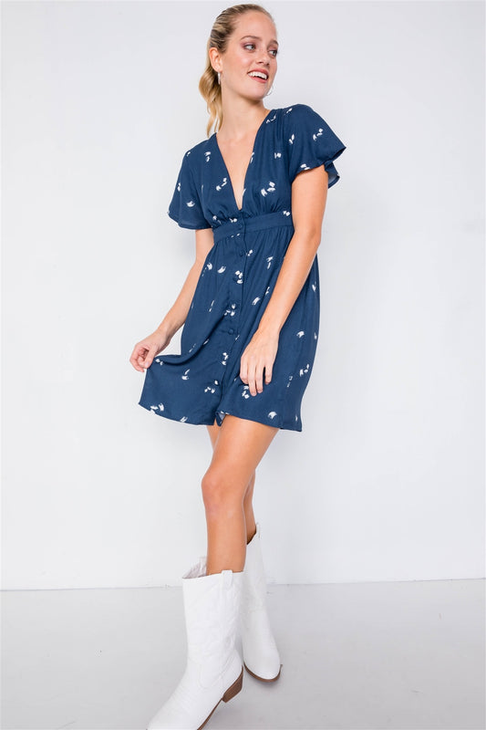 Sheer Polka Dot Fabric Long Ruffle Sleeve V-neck Dress