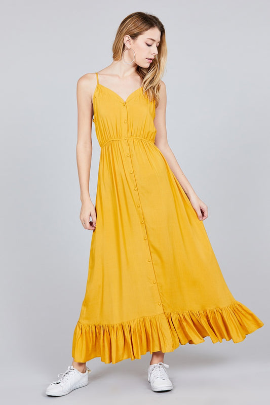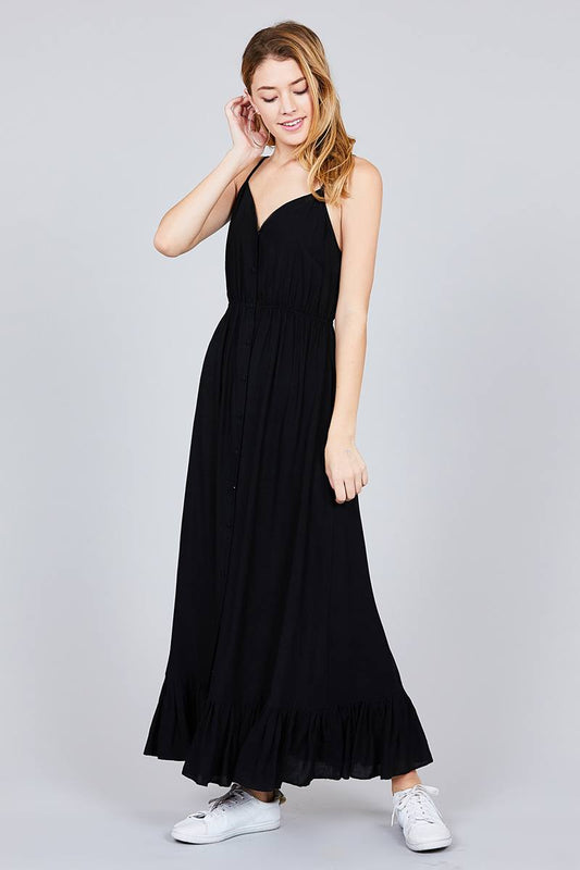 V-neck Button Down W/ruffle Hem Cami Maxi Dress