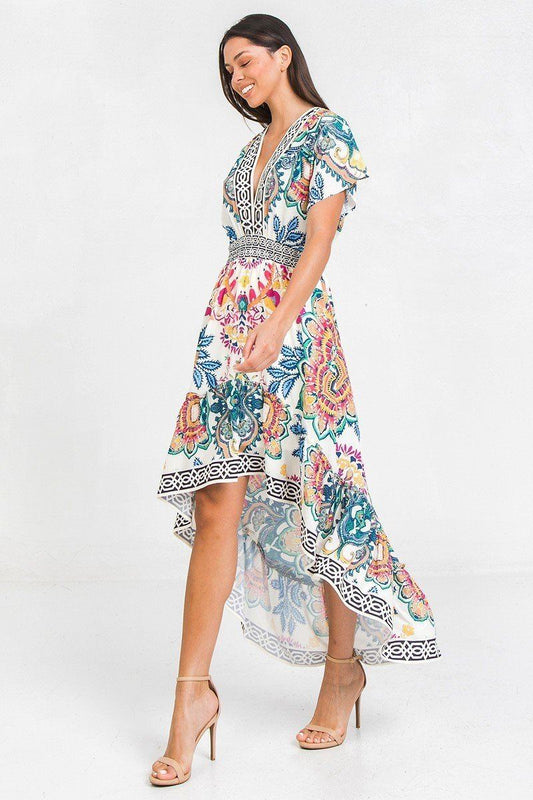 High Neck Cap Sleeve Slitted Basic Midi Dress