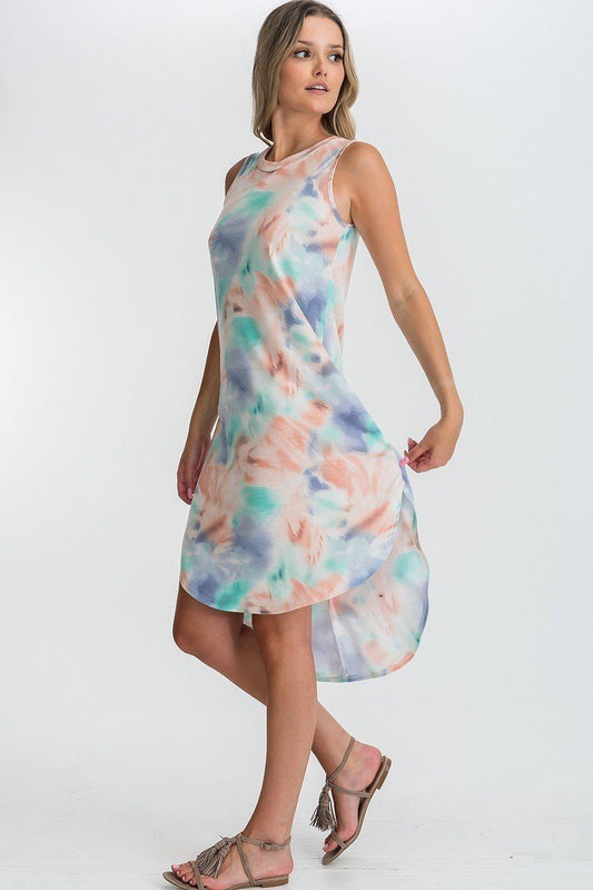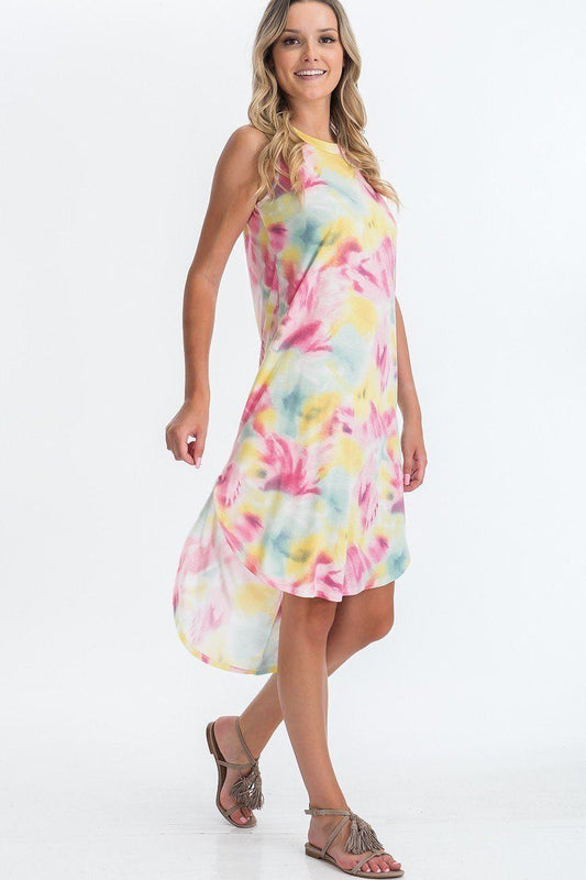 Blush Magenta Sky Blue Boho Floral Vintage Fit & Flare Neck Mini Dress