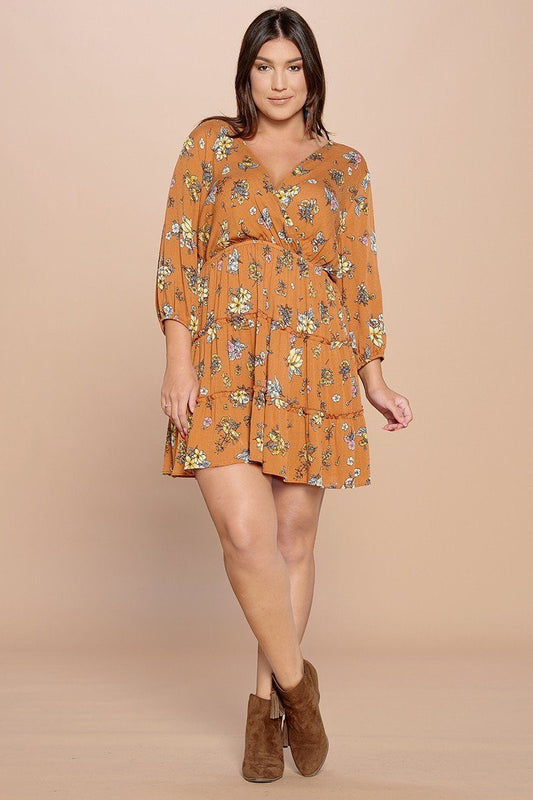Plus Size Floral Mix Sheer Mock Lace Neck Mini Dress