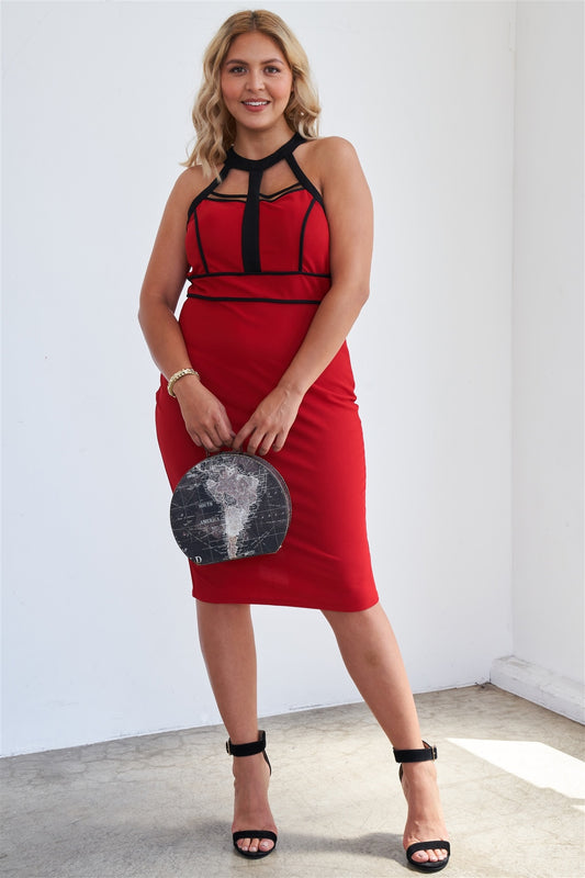Size Barbados Cherry Cage Halter Neck Bodycon Midi Dress