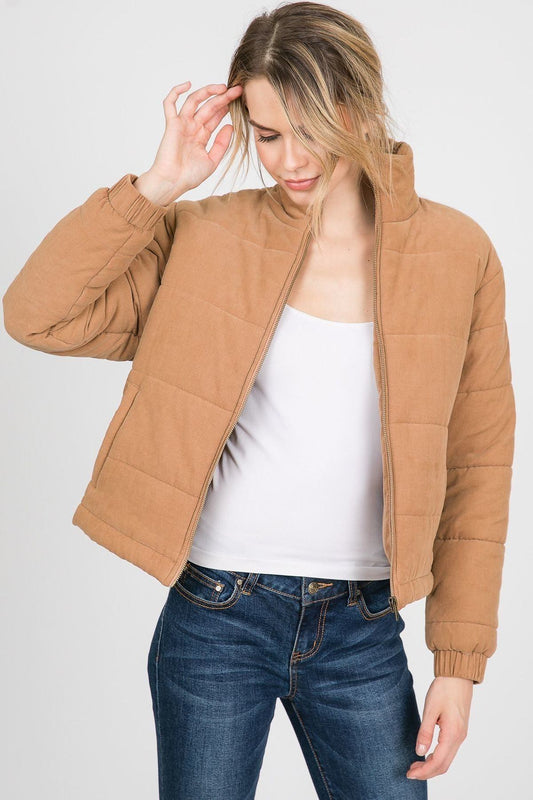 Retro Look Quilted Soft Corduroy Bomber Jacket