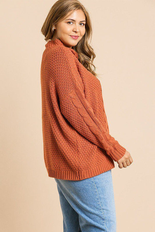 Long Sleeve Cable Knit Mock Neck Pullover Sweater