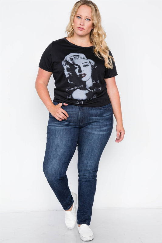 Plus Size Black Graphic Marilyn Monroe Knit Top