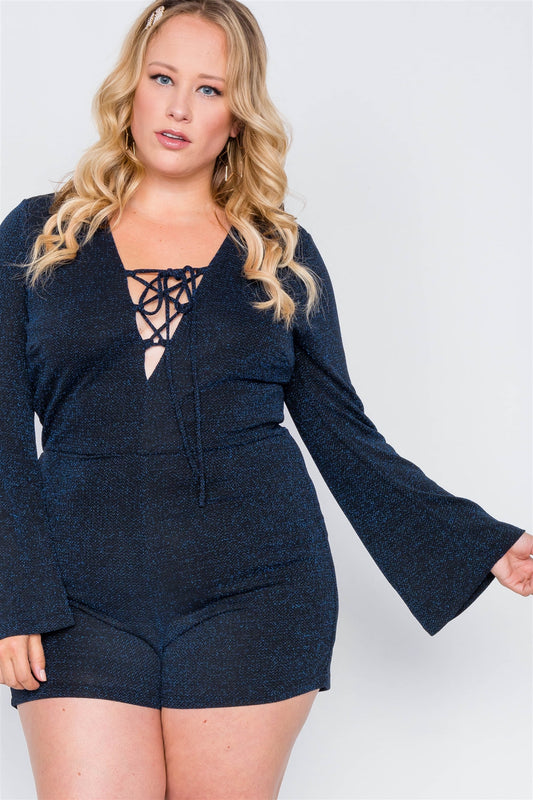 Plus Size Midnight Deep V-neck Evening Romper