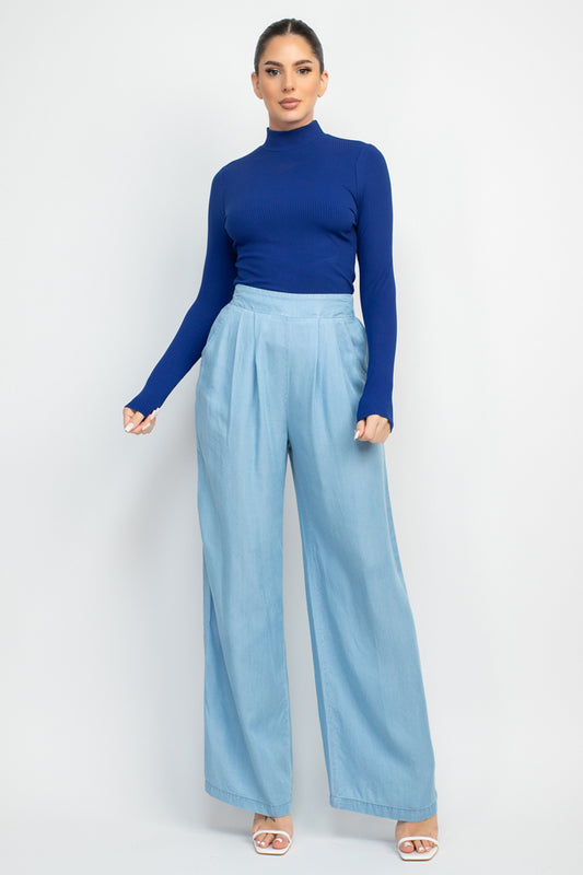 Side Zipper Pleats Detail Stretch Denim Mini Skirt