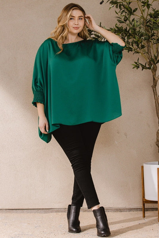 Ember Jacquard Solid Woven Oversized Boatneck 3/4 Sleeve Blouse