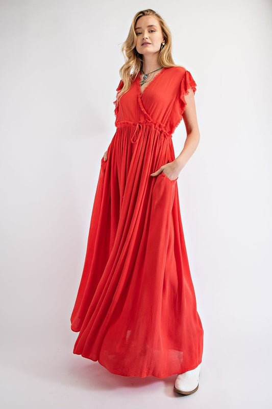 Sold outWing Sleeves Rayon Gauze Maxi Dress