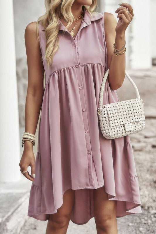 Solid Frill Trim Mock Neck Sleeveless Tunic Blouse
