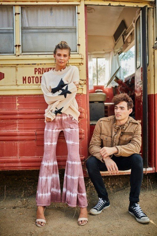 Distressed Round Neck Long Sleeve Star Print Loose Fit Sweater