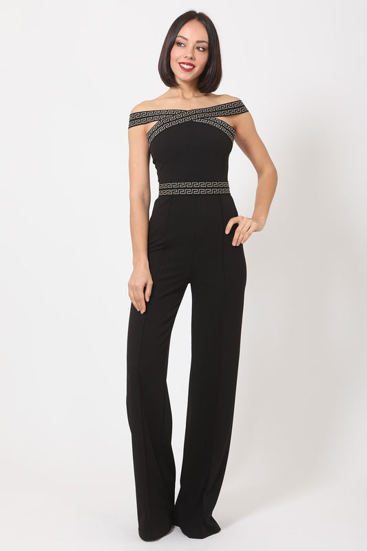 Off The Shoulder Straps W/greek Print Design And On Waist