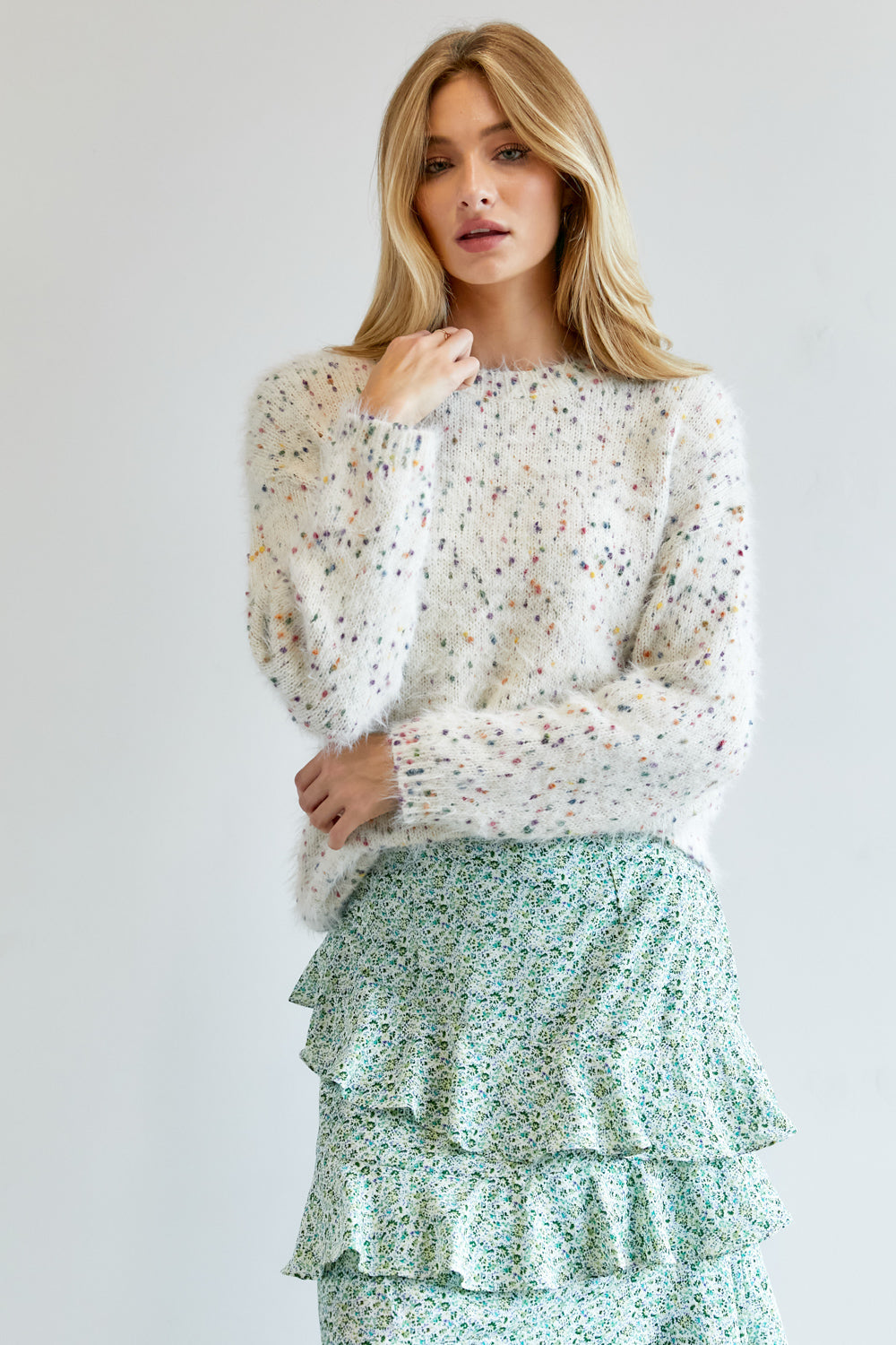 CUTE MULTI COLOR POLAK DOT TRIM FUZZY THICK KNIT OVERSIZED COZY SWEATER 60% Polyester 40% Nylon