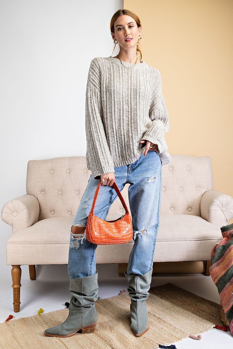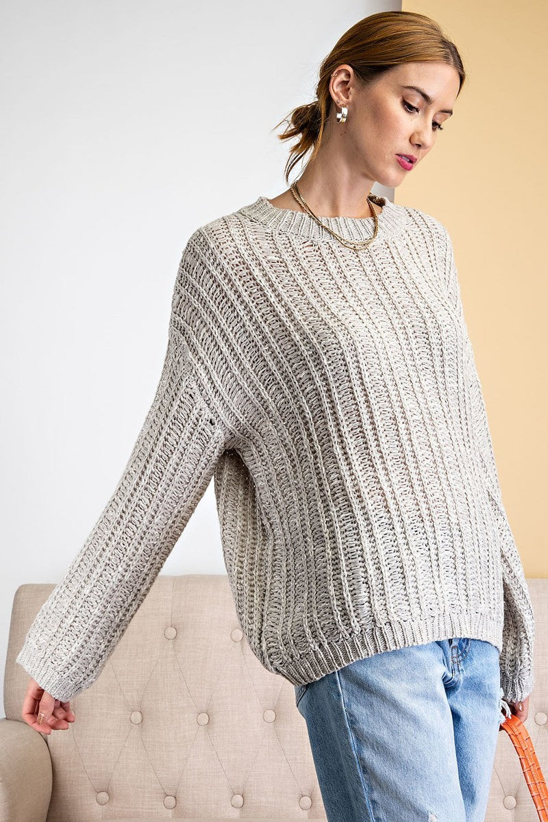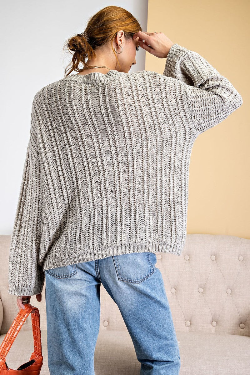 TWO TONE AND TEXTURED SWEATER. DROP SHOULDER