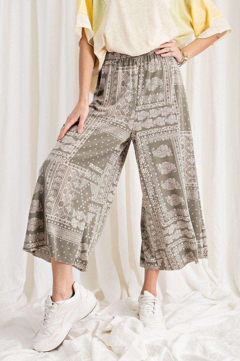 Printed Terry Knit Wide Leg Comfy Pants
