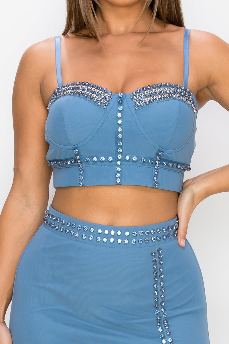 Studded Stone Cami Top & Slit Mini Skirts Set