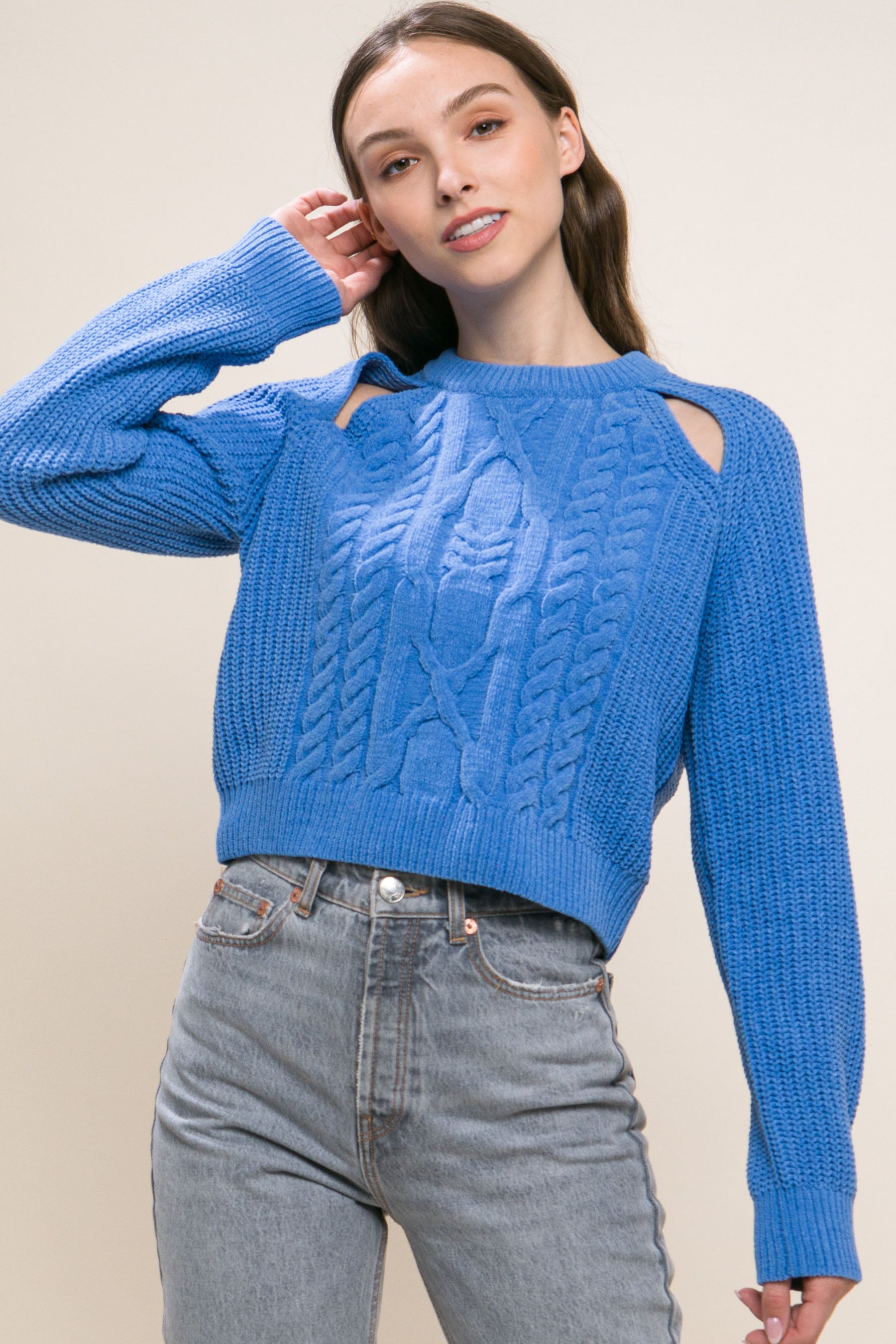 Why Choose the Knit Pullover Sweater with Cold Shoulder Detail in Blue?