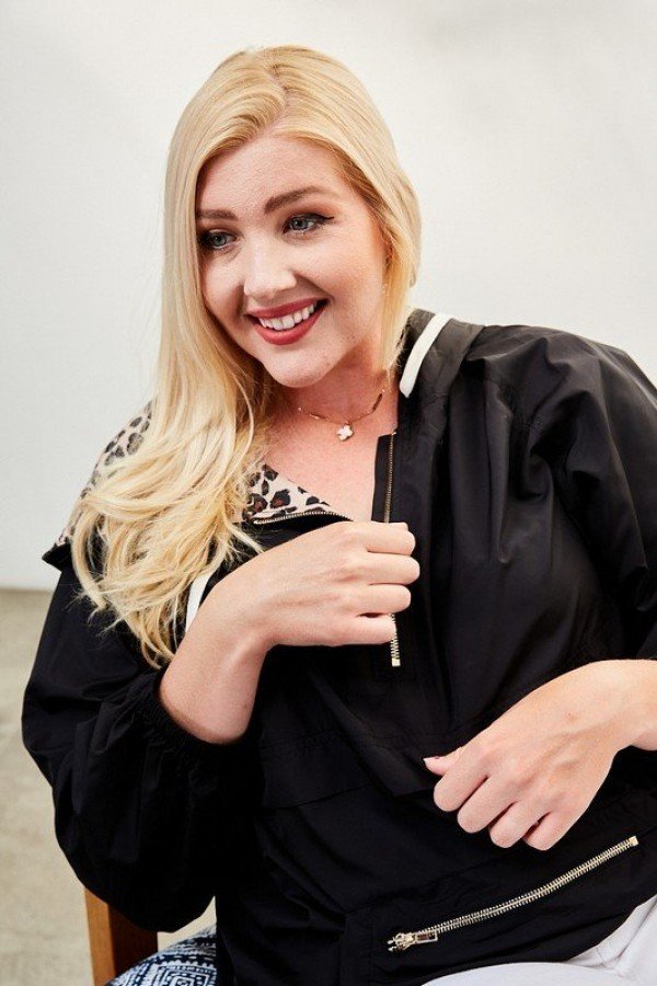 Plus Size Solid Pullover With Leopard Contrast Inside Windbreaker
