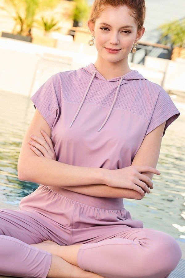 Hoodie Waist Adjustable Contrast Mesh Crop Top