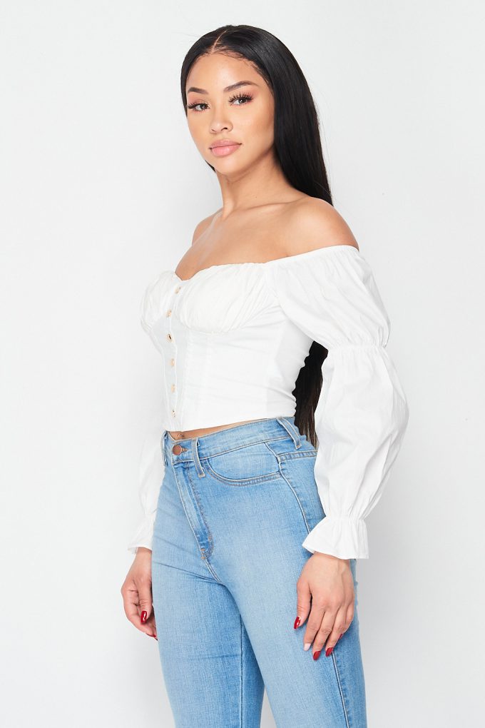 POPLIN OFF SHOULDER RIBBED CORSET TOP