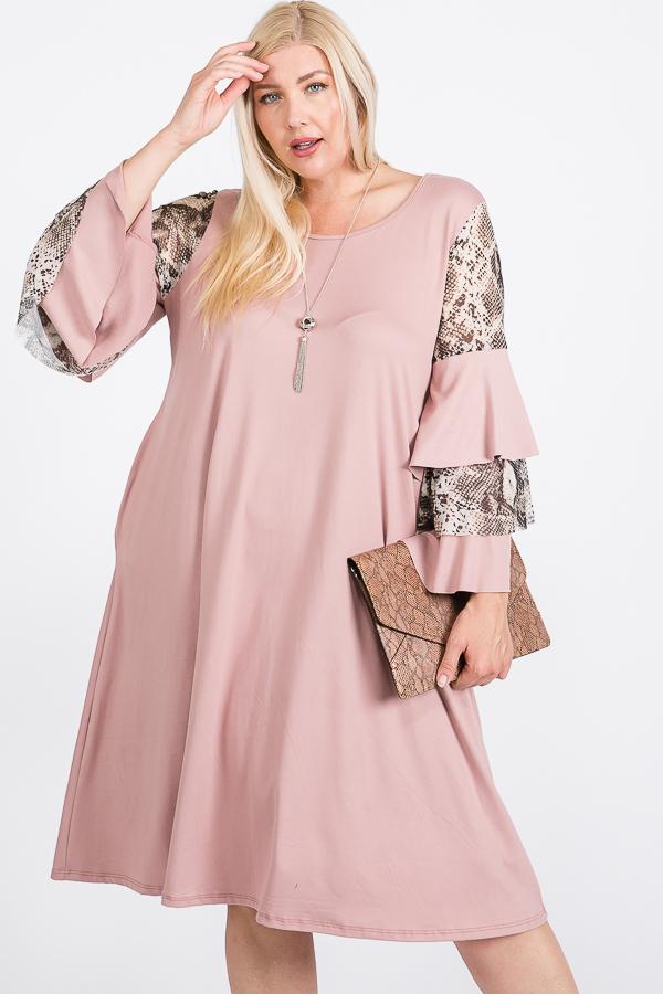 MIXED RUFFLE SLEEVE WITH HIDDEN POCKET A LINE DRESS
