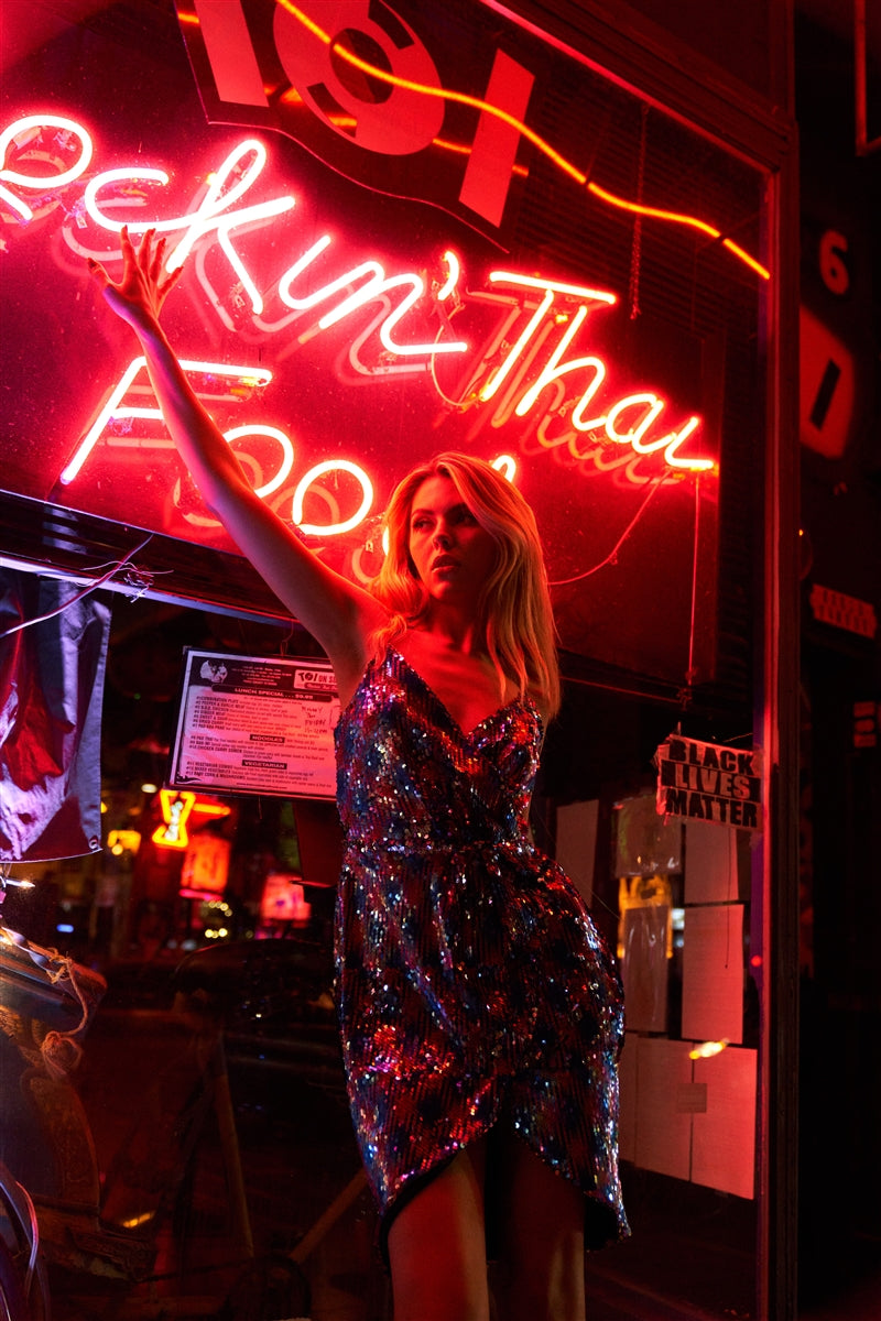 Rainbow sequin, sleeveless, adjustable shoulder straps, plunging front and back V-neckline, wrap front and bottom, tulip shaped bottom, asymmetrical length, lined, mini length, stretchy, cocktail party & club attire, holiday clothing, fall/winter chic wear collection