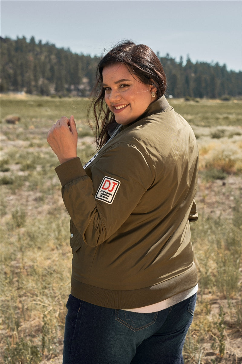 Plus Aviator Retro Patches Long Sleeve Front Zipper Bomber Jacket