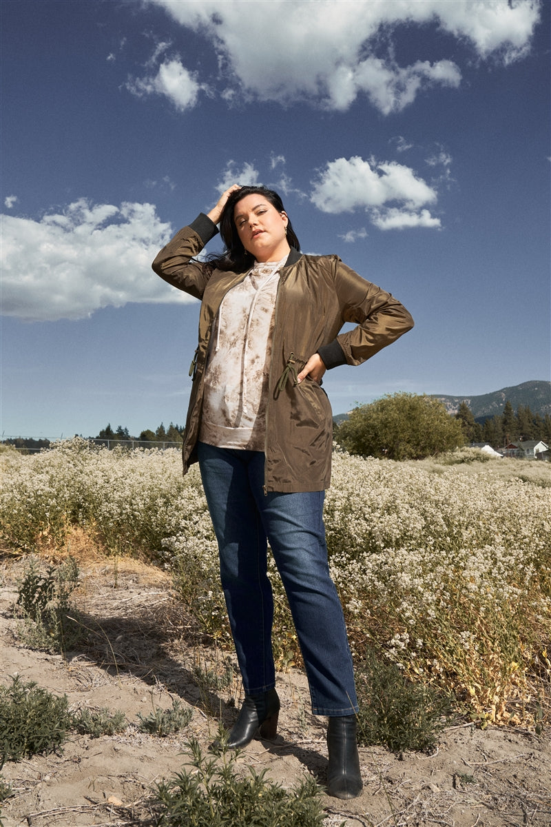 Plus Olive Drawstring Trim Zip-up Fitted Coach Rain Jacket