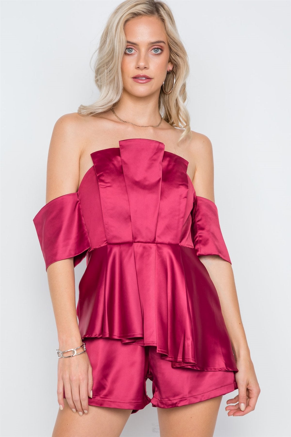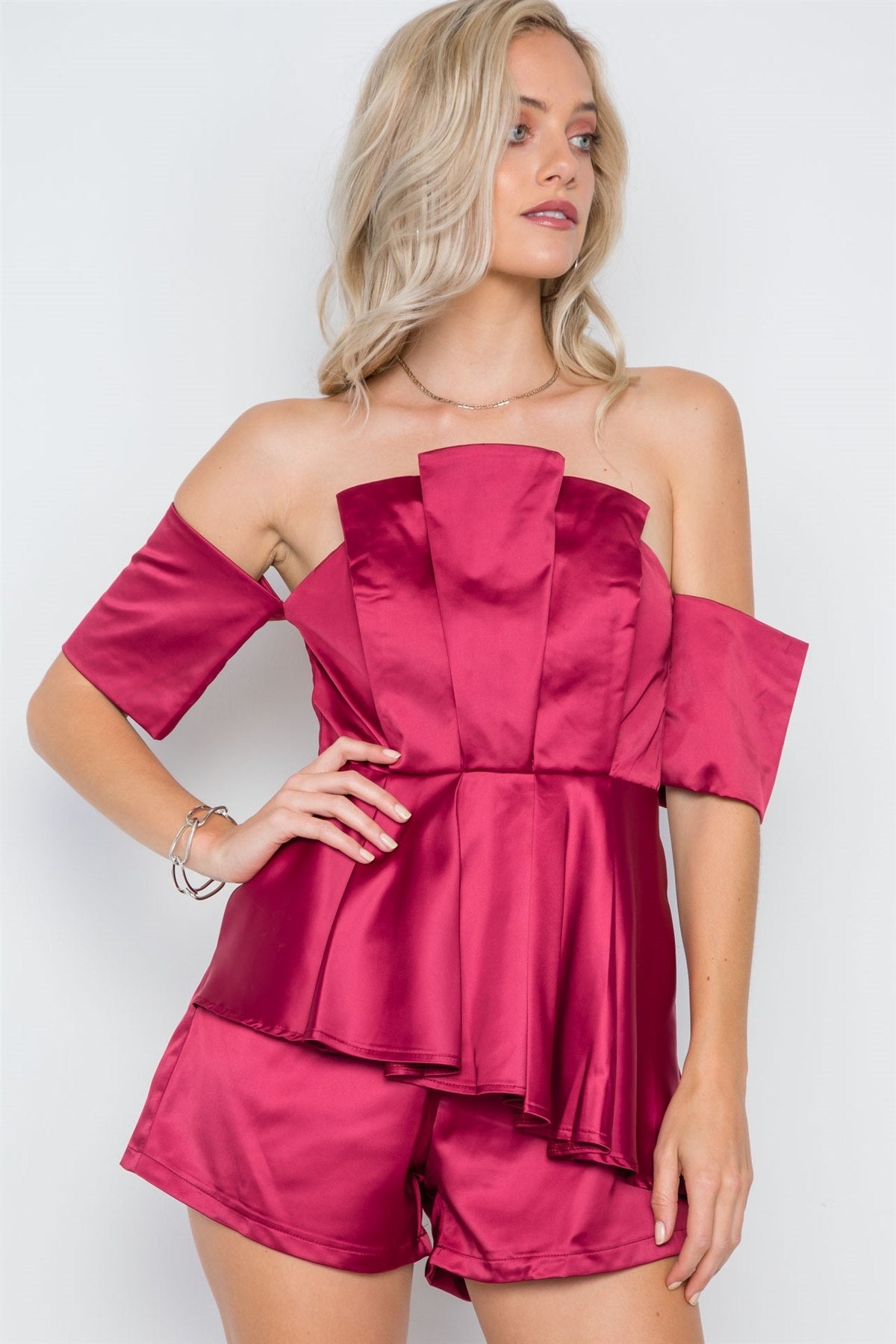 Wine Layered Off-the-shoulder Evening Romper