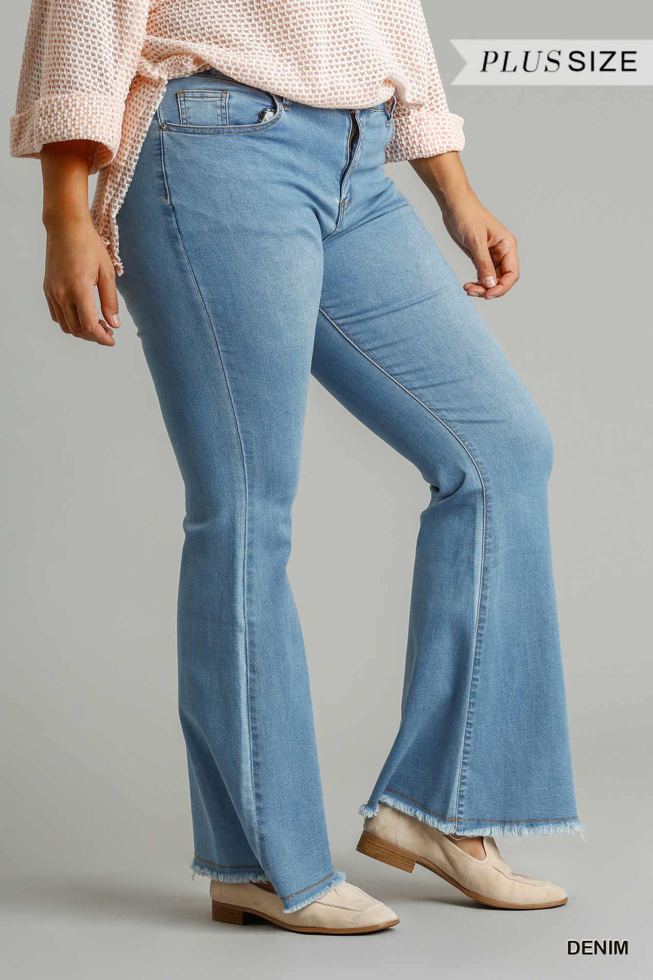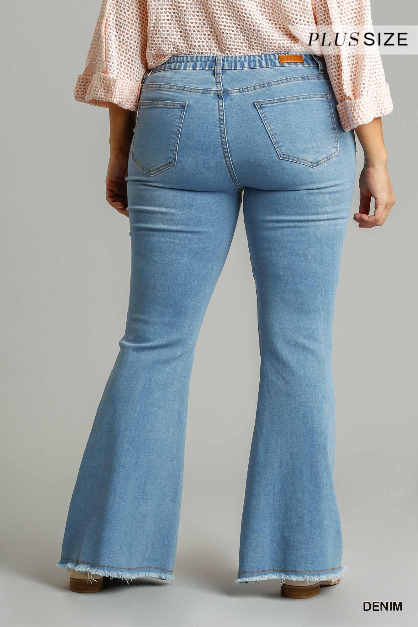 High Rise Stretch Denim Wide Leg Flare Jeans