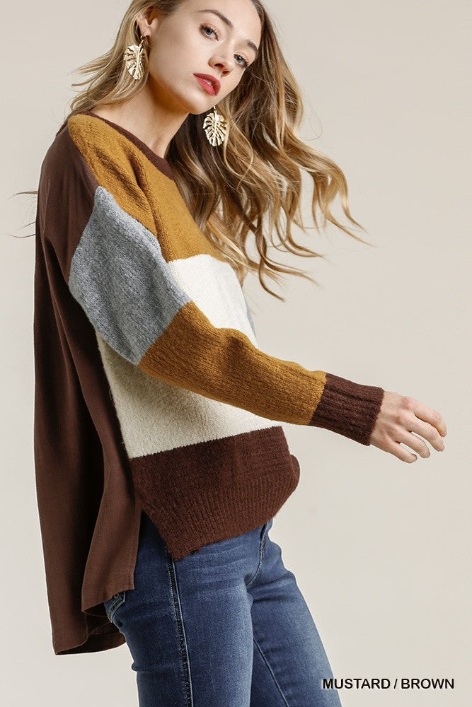 Colorblock Contrasted Cotton Fabric on Back Top with Side Slits and High Low Hem