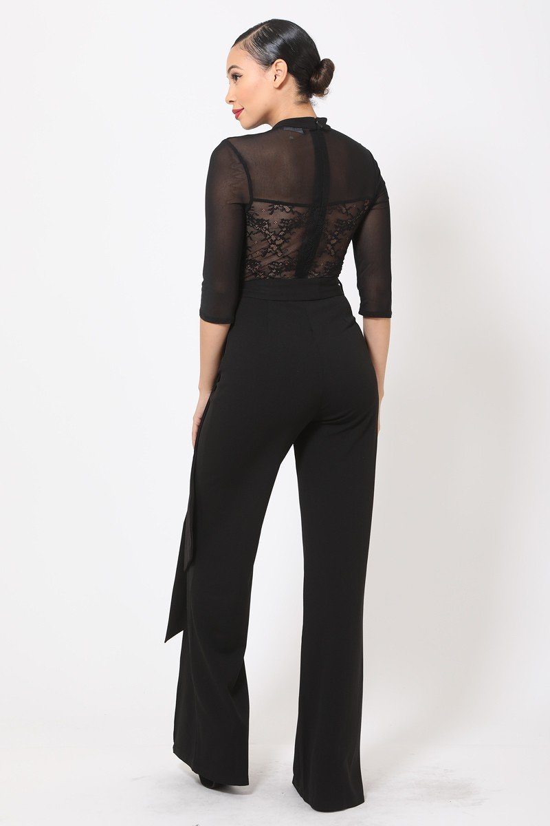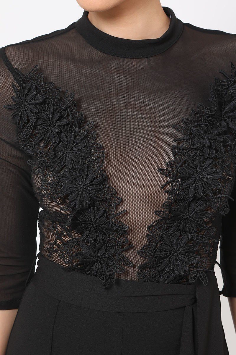 Deep V-neck Mesh See Through W/ Crotchet Jumpsuit